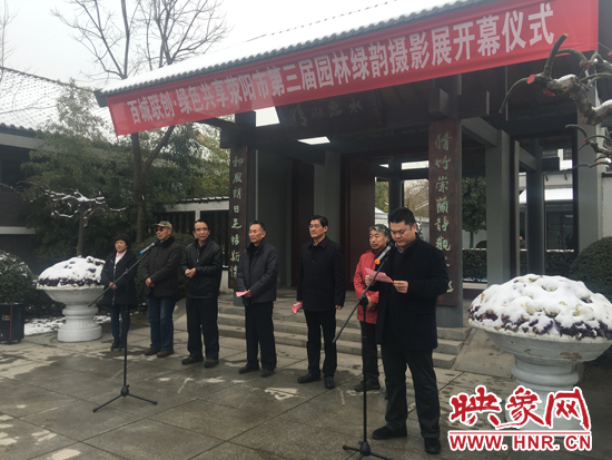 映象網(wǎng)訊  22日上午10時,由鄭州市風(fēng)景園林協(xié)會園林文化產(chǎn)業(yè)分會、滎陽書畫院主辦,滎陽市攝影家協(xié)會承辦的“百城聯(lián)創(chuàng).綠色共享”滎陽市第三屆園林綠韻攝影展在滎陽植物園內(nèi)開幕。原滎陽市人大副主任王海林、原市政協(xié)副主席閏紅舉、市攝影協(xié)會名譽主席李軍嶺、市園林中心主任李向陽、市園林中心副主任梅慧君以及市攝影協(xié)會理事會員、攝影愛好者們參加了開幕式。