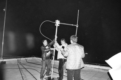 信號消失,無法通過儀器進一步定位,只能使用“笨辦法”,爬樓頂找天線。身材較瘦的郭建成被同事托上一棟樓的電梯機房房頂,在夜幕下借助微弱的燈光,用望遠鏡反復尋找,終于在小區(qū)5號樓B座一單元樓頂發(fā)現(xiàn)了黑電臺的天線。