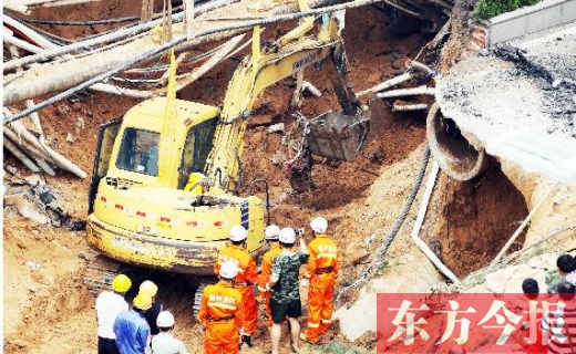 塌方發(fā)生時,一男一女被民警和熱心市民救出。目擊者稱,坑中仍有一名女士和小孩,但警方經過排查,除了名叫張帆的女士,尚未發(fā)現(xiàn)有人員失蹤。今報三批記者輪班蹲守現(xiàn)場,截至3日2時,救援在經歷了近30個小時后,尚未找到張帆?!鯑|方今報記者 夏萍 見習記者 靳亞東 宋迎迎 攝影 首席記者 袁曉強 張曉冬 沈翔 邱琦