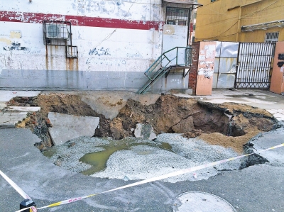 王先生說(shuō),今年7月,該處的供水管道曾爆管過(guò)一次,但當(dāng)時(shí)該處只發(fā)生一次小范圍塌陷,坑也沒(méi)這么深。沒(méi)想到,時(shí)隔2個(gè)月,該處再次管道爆裂、地面塌陷。
