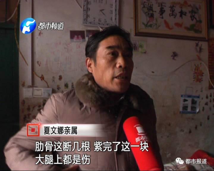 隨后,夏文娜家人趕到了殯儀館,在殯儀館見(jiàn)到了夏文娜的尸體。家人發(fā)現(xiàn)文娜肋骨斷裂、腿部有傷。