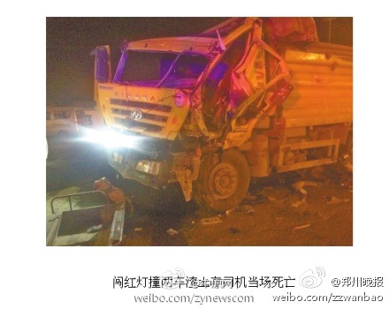 2.鄭州:渣土車凌晨闖紅燈連撞兩車 司機當場死亡