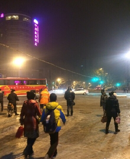 雪停了,但是路上的雪被車碾軋之后比較光滑。@大河寒江雪 :南陽(yáng)路快速公交站,等了半小時(shí)沒(méi)見(jiàn)一輛公交。@清qing茶:桐柏路農(nóng)業(yè)路交叉口已經(jīng)有兩輛公交車因路滑橫到馬路上了??傊?,出門不管是開(kāi)車還是騎車還是步行都要千萬(wàn)小心!遲到不要緊,安全才第一!