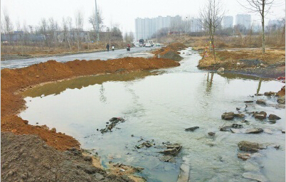 市民王先生反映,南水北調(diào)大橋南邊的祈福大道上,到處都是積水。現(xiàn)在水深一米多,長(zhǎng)度有近百米,連公交車都不能通過?!白蛱煜掠辏e水更深,啥車都過不去。我們?cè)谶@里幫助推滅火的車,不知推了多少輛?!?/font>