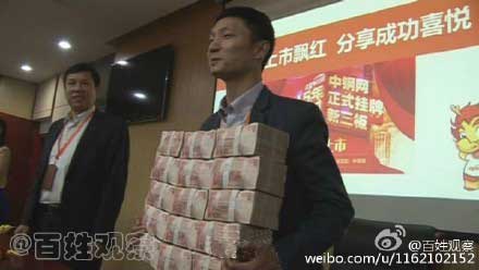 4、、土豪老板發(fā)現金 員工用麻袋扛錢