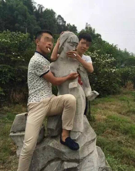 四川宜賓趙場佛現山景區(qū)花開正艷,卻出現了與美景相悖的不文明行為。兩男子近日對一婦女雕像又是摟抱又是摸胸。據了解,雕像是兩年前計生文化進景區(qū)時設置的。目前,拍攝時間和兩男子身份尚不明確??达L景還是煞風景?