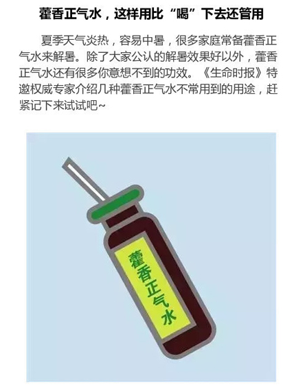 夏天炎熱,容易中暑,很多家庭常備藿香正氣水來(lái)解暑。除了解暑效果以外,藿香正氣水還有很多你意想不到的功效。外敷去暑、巧治皮膚病、解酒、預(yù)防暈車、緩解嬰兒腹瀉......