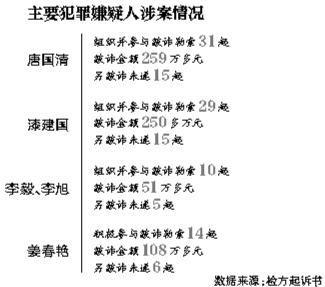 起訴書中,唐國清、漆建國、李毅被認為是組織領導者;姜春艷積極參與并協(xié)助唐國清等人管理其他人。上述4人被認為是主犯。