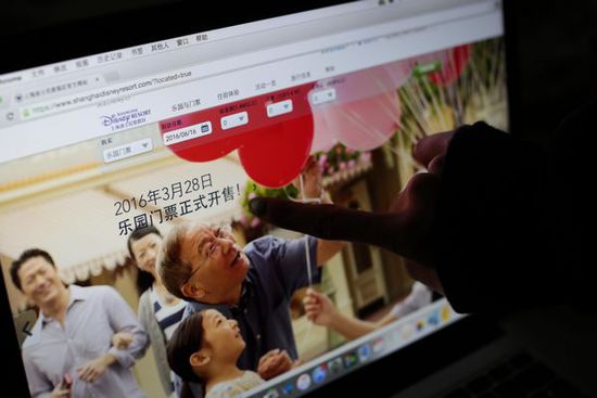 2015年3月28日凌晨,上海,一位市民在電腦前購買迪斯尼門票。當日凌晨0點01分,上海迪斯尼樂園門票正式開售。澎湃新聞記者 寇聰 圖