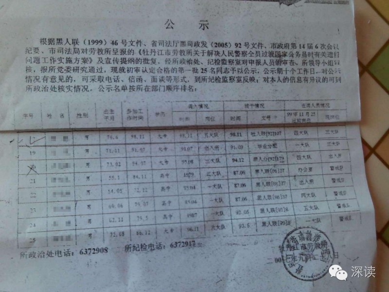 日前,有多名黑龍江省牡丹江市強(qiáng)制戒毒所(原勞教所)在職及退休干警通過(guò)爆料平臺(tái)向深讀爆料稱,該單位原副所長(zhǎng)為了能讓兒子進(jìn)入勞教所工作,通過(guò)虛構(gòu)出生年月的手段造假,使其兒子順利進(jìn)入勞教所工作,并在入黨后被提拔成為單位的中層干部。