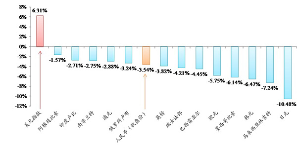 答:從數(shù)據(jù)看,人民幣在全球貨幣體系中仍表現(xiàn)出穩(wěn)定強(qiáng)勢貨幣特征。近期美元上漲較快,反映的是美國經(jīng)濟(jì)增長加快、通脹預(yù)期上升、美聯(lián)儲加息步伐可能明顯加快等美國國內(nèi)因素。而人民幣匯率對美元波動有所加大,主要是特朗普當(dāng)選美國總統(tǒng)、美聯(lián)儲加息預(yù)期突然增強(qiáng)、英國“脫歐”、埃及鎊自由浮動等外部因素驅(qū)動。這些因素對世界各國而言都有些意外,資金回流美國推動美元指數(shù)迅速上漲、美國三大股指再創(chuàng)新高,全球貨幣普遍對美元貶值,有的跌幅還比較大。下一步美元走勢存在不確定性,不排除市場預(yù)期修正引發(fā)美元回調(diào)的可能。