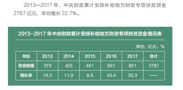 今年,中央財政預(yù)算擬安排補(bǔ)助地方專項(xiàng)扶貧資金 1061 億元,首次突破千億元規(guī)模。中央財政新增扶貧投入及有關(guān)轉(zhuǎn)移支付向深度貧困地區(qū)傾斜。