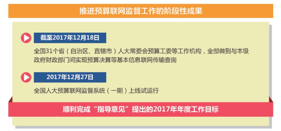 此外,全國人大還著力推進(jìn)預(yù)算聯(lián)網(wǎng)監(jiān)督工作,更好地打造“陽光財政”。通過網(wǎng)絡(luò)傳輸報送、提供聯(lián)網(wǎng)查詢,實(shí)現(xiàn)預(yù)算審查監(jiān)督信息化和網(wǎng)絡(luò)化,提升預(yù)算審查監(jiān)督內(nèi)容的詳實(shí)性和時效性,增強(qiáng)預(yù)算審查監(jiān)督的針對性和有效性,推進(jìn)財政信息公開透明和預(yù)算行為規(guī)范有序。目前,推進(jìn)預(yù)算聯(lián)網(wǎng)監(jiān)督工作已經(jīng)取得階段性成果。