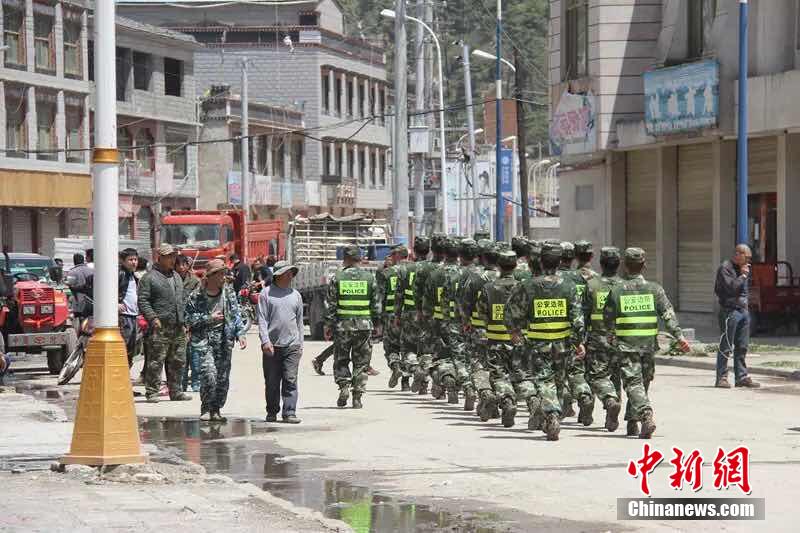 5月12日下午15點(diǎn)05分,尼泊爾再次發(fā)生里氏7.5級(jí)地震,吉隆方向震感強(qiáng)烈。地震發(fā)生后,機(jī)動(dòng)支隊(duì)二大隊(duì)立刻組織22人的救助小組趕赴幫興村進(jìn)行救援,挨家挨戶開(kāi)展搜救,并轉(zhuǎn)移和安撫受災(zāi)群眾。在吉隆鎮(zhèn)街面擔(dān)負(fù)巡邏任務(wù)的官兵成功從救出1名受傷群眾,并及時(shí)將其送往醫(yī)療點(diǎn)進(jìn)行醫(yī)治。目前,大隊(duì)官兵正繼續(xù)對(duì)附近村莊進(jìn)行排查。中新社發(fā) 楊鴻輝 攝