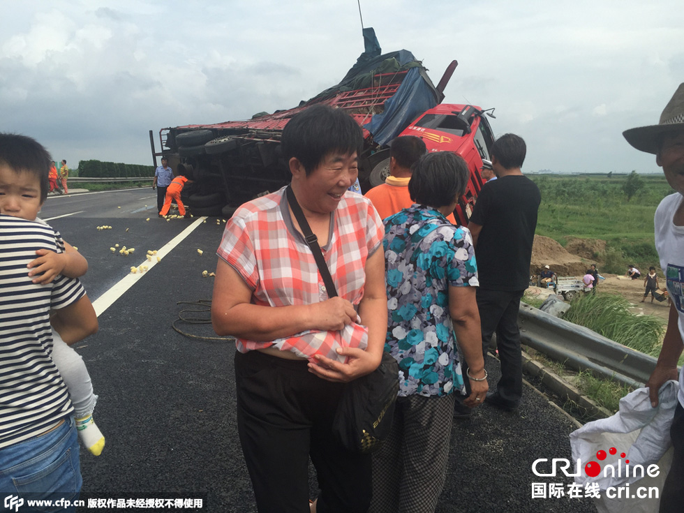附近村民聞?dòng)?,紛紛來抓小雞,不少人開著三輪車,成車裝回小雞。也有被堵在路上的人下車抓小雞?,F(xiàn)場警察無法制止,車主告訴記者,一車小雞價(jià)值五萬元。
