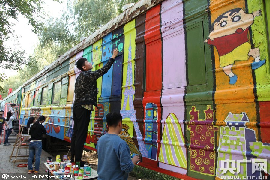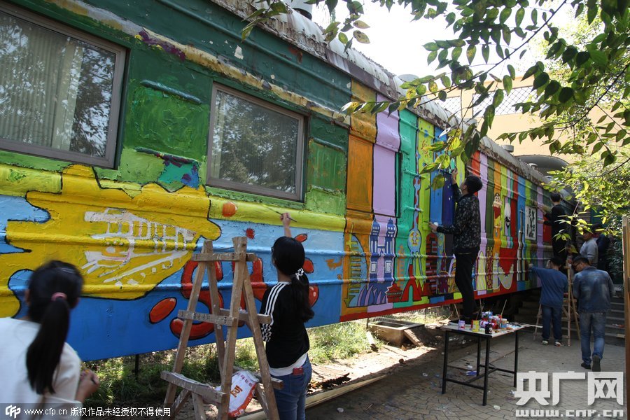 2015年10月10日,鄭州四禾美術(shù)中學(xué)充分發(fā)揮美術(shù)生的優(yōu)勢(shì),對(duì)火車車身1進(jìn)行涂鴉改造,使火車宿舍看起來(lái)更加漂亮。