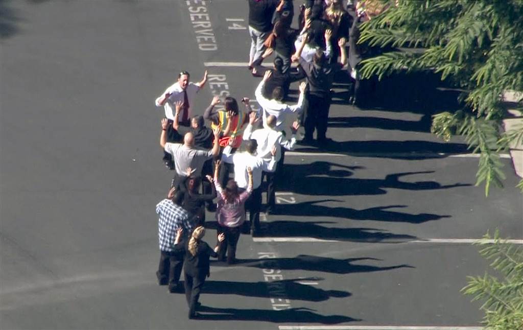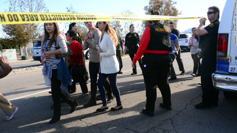 12月3日,美國加利福尼亞州的圣貝納迪諾(San Bernardino)發(fā)生槍擊,受害者多達(dá)20人,圖為當(dāng)局疏散人群。