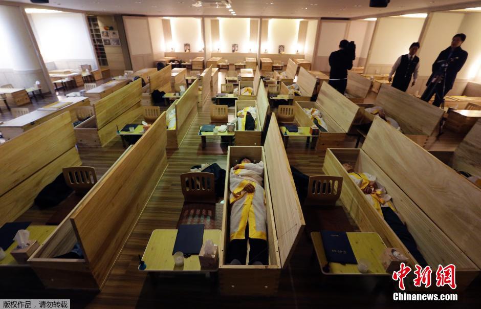 韓國(guó)社會(huì)近來(lái)興起一股“模擬葬禮”風(fēng)潮,以這種另類的方式幫助人們減壓、調(diào)整人生航向。據(jù)報(bào)道稱,韓國(guó)的自殺率不斷上漲,每天都有多達(dá)40人自殺。專家認(rèn)為韓國(guó)過于激烈的競(jìng)爭(zhēng)環(huán)境是導(dǎo)致人們抑郁、自殺的罪魁禍?zhǔn)住J谞柕囊患抑委熤行姆Q,他們推出的“死亡體驗(yàn)”療法是消除自殺危機(jī)的良方。