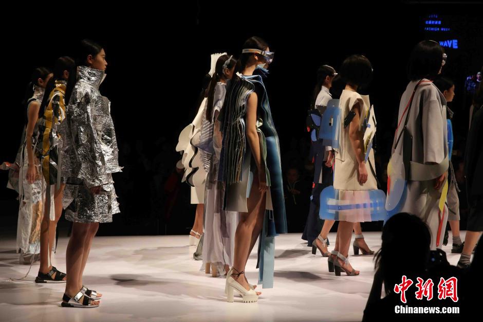 北服時(shí)裝周各專業(yè)方向的畢業(yè)秀都有全新設(shè)計(jì),首次按“時(shí)尚創(chuàng)意”和“時(shí)尚成衣”分組進(jìn)行專場發(fā)布的女裝設(shè)計(jì)方向是本屆一大亮點(diǎn)。 中新社記者 任海霞 攝