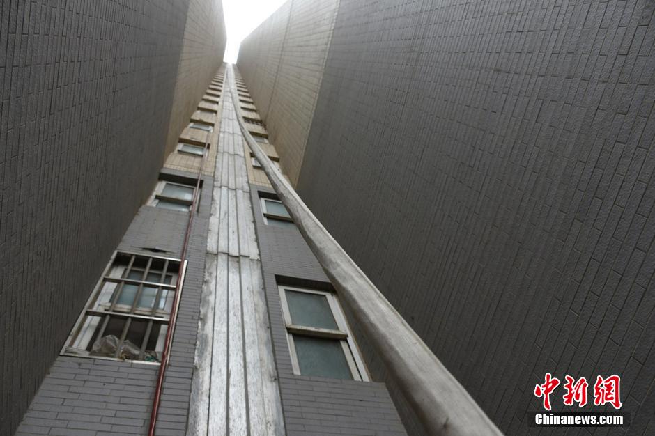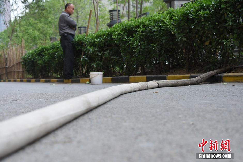 水管是從20樓放下來的,小菜園的主人用它來澆水?!蔽磥砺费卜狸?duì)員司廣紅說。在小菜園旁邊站著一名中年男子,手里拿著鐵锨。男子說,他是燕莊村民,姓張,家住9號樓20層。 李四信 攝 圖片來源:視覺中國
