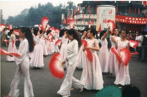 火炬從二七廣場開始傳遞。“李寧”運(yùn)動(dòng)服、“健力寶”飲料、熊貓“盼盼”成為當(dāng)時(shí)的大亮點(diǎn)。(攝影 | 尹人)