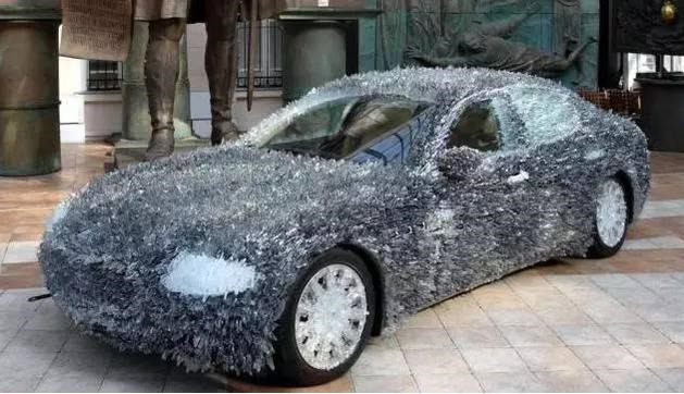 乍看上去,還以為車上長滿白毛,其實都是玻璃碴。這些插滿車身的玻璃的總重達(dá)到了8千克,如果您在街上看到了這樣的車,你會伸出手去摸摸嗎?分分鐘告訴你什么是白手去,紅手回。 (來源:每經(jīng)網(wǎng) )