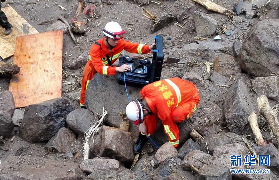 5月8日,在福建泰寧山體滑坡救援現(xiàn)場,武警水電二總隊六支隊官兵利用“蛇眼生命探測儀”對任務區(qū)進行搜救(手機拍攝)。