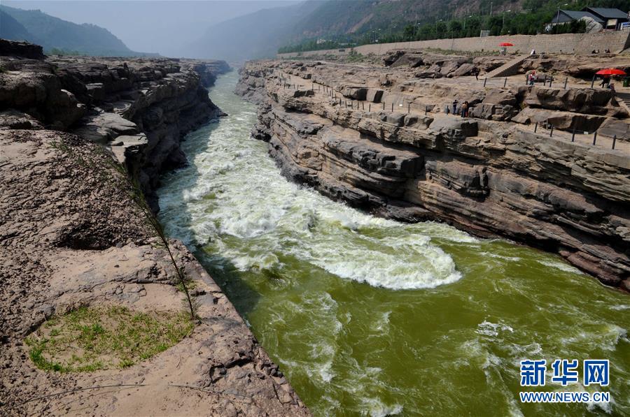 5月10日,黃河壺口瀑布十里龍槽水流明顯變清。自4月下旬以來,受上游降雨偏少和黃河干流來水量減少影響,河水流速變緩,泥沙沉淀,位于山西吉縣和陜西宜川縣交界的壺口瀑布水色明顯變清,呈現出別于日常的“清流飛瀑”景觀。新華社發(fā)(呂桂明 攝)