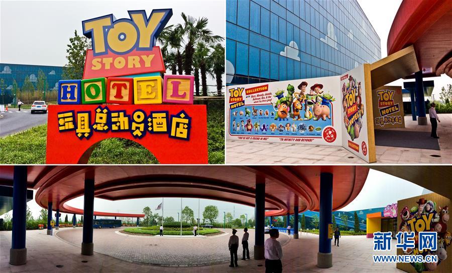 5月15日,參與內(nèi)部測試的游客在上海迪士尼玩具總動(dòng)員酒店的廣場前留影。當(dāng)日,上海迪士尼主題酒店之——玩具總動(dòng)員酒店大堂、廣場、餐廳、度假區(qū)短駁車等區(qū)域及設(shè)施開始內(nèi)部測試。這家共有800個(gè)房間的主題酒店將于6月中旬正式迎客。新華社發(fā)(鈕一新 攝)