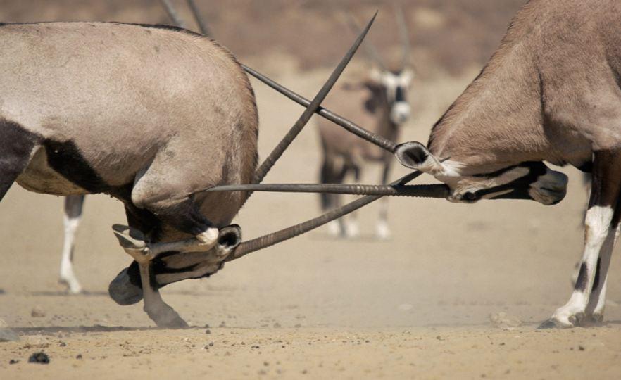 據(jù)英國(guó)《每日郵報(bào)》報(bào)道,一頭雙角筆直下折的母長(zhǎng)角羚在納米比亞野生動(dòng)物園被發(fā)現(xiàn)。盡管與同類顯得格格不入,但是畸形的雙角并未給她帶來(lái)很多困擾。