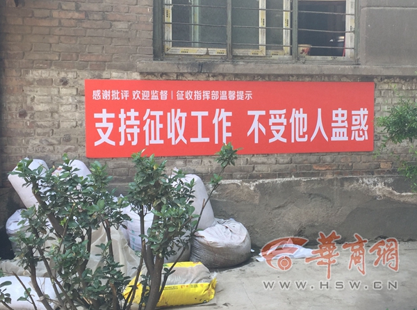 華商網(wǎng)訊 “支持征收工作、不做過街老鼠。”看到這樣的拆遷標(biāo)語,您會(huì)作何感想?近日,這樣的標(biāo)語出現(xiàn)在雁塔區(qū)糧食局的家屬院內(nèi),而這則標(biāo)語的懸掛者,則是紅會(huì)醫(yī)院西側(cè)棚戶區(qū)改造項(xiàng)目征收指揮部。對(duì)于為何懸掛這樣的標(biāo)語,該指揮部一位負(fù)責(zé)人稱,部分住戶為達(dá)個(gè)人目的煽動(dòng)群眾,抵抗拆遷,而為提醒其他群眾不受蒙蔽、蠱惑,制作了這條橫幅。目前,標(biāo)語已經(jīng)被替換。