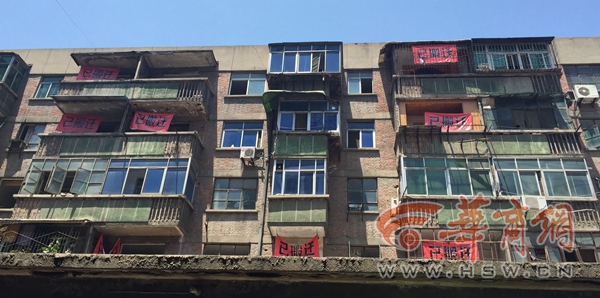 5月24日上午,華商網(wǎng)記者來到網(wǎng)友反映的紅會(huì)路附近,此處位于長安路沿線,共有四棟老式樓房面臨拆遷,居民樓的墻面上刷著黑色的“征”字,到處懸掛著拆遷宣傳橫幅。