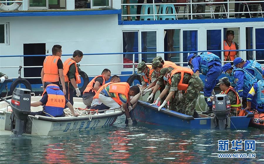 打撈遺體現(xiàn)場(chǎng)。截至目前,這起事故已造成2人死亡、13人失蹤,搜救工作仍在進(jìn)行中。 新華社記者薛玉斌攝 圖片來源:新華網(wǎng)