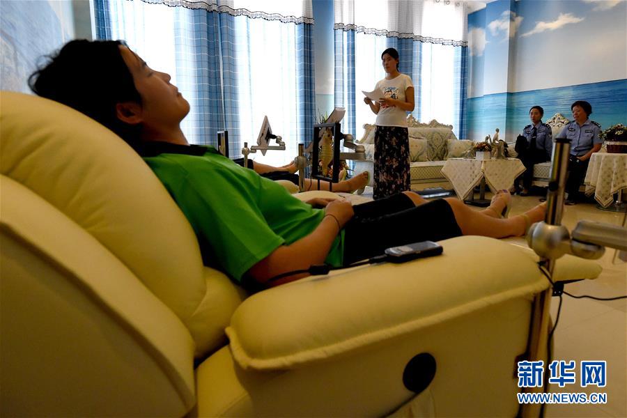 6月26日是國際禁毒日,今年的主題是“無毒青春健康生活”。在禁毒日前夕,記者走進(jìn)了河南省唯一的女子強(qiáng)制隔離戒毒所及唯一的未成年人強(qiáng)制隔離戒毒所。近年來,戒毒所注重對(duì)戒毒人員的溫情關(guān)懷救助,搭建戒毒治療綜合性平臺(tái),努力為戒毒人員打造“溫馨之家”,設(shè)置了瑜伽室、健身室、心理咨詢室等場所,通過開展各種體育鍛煉、心理咨詢、職業(yè)技能培訓(xùn)以及社會(huì)適應(yīng)性教育等活動(dòng),幫助戒毒人員強(qiáng)化體能、修復(fù)身心損害,使他們可以盡快走出困境,融入社會(huì)。新華社記者 李安 攝