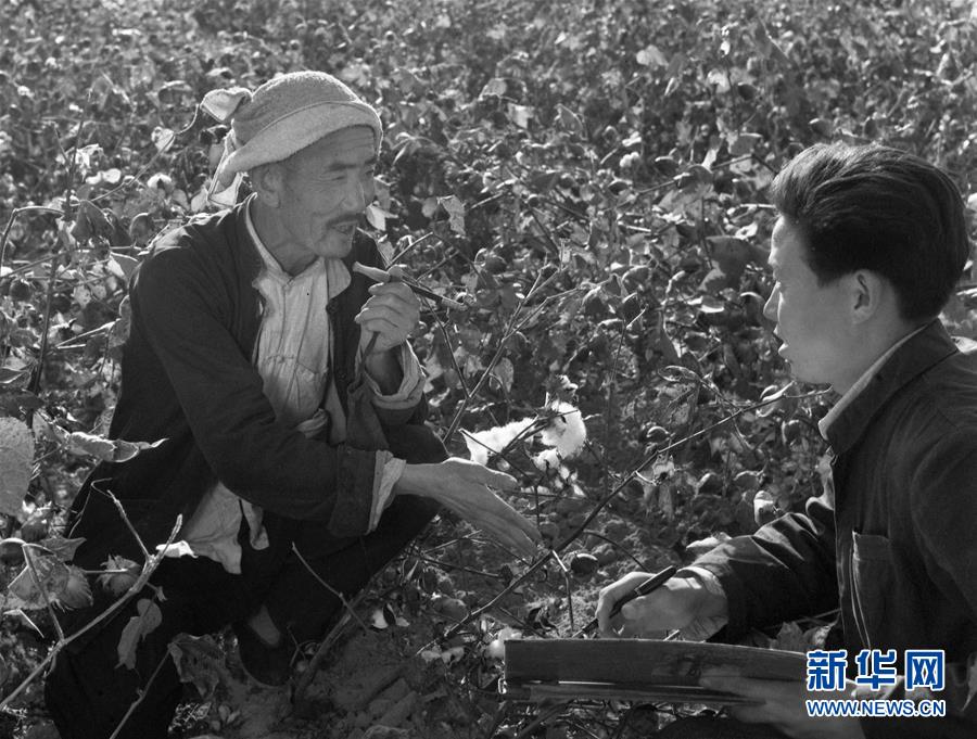 圖為植棉能手吳吉昌(左)在棉田里介紹他的植棉經(jīng)驗。一張照片,定格一個瞬間;一組群像,打開一部史冊。中國共產(chǎn)黨成立95周年之際,我們選取新華社中國照片檔案館珍藏的資料照片,展現(xiàn)中國共產(chǎn)黨人特有的“紅色氣質”。新華社發(fā)