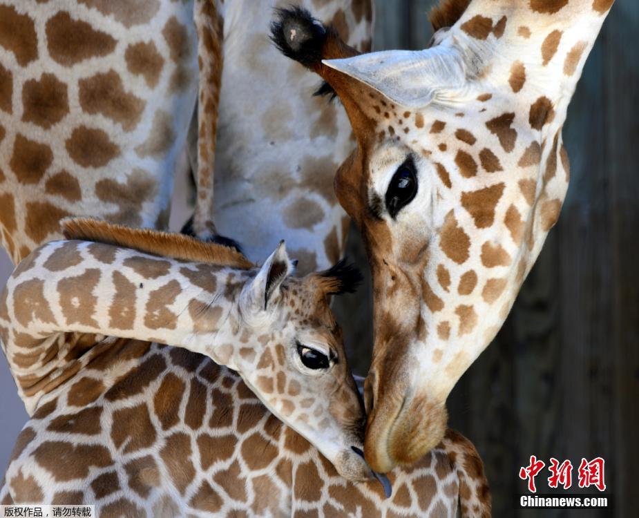 法12歲長(zhǎng)頸鹿誕下“寶寶” 垂眼吻子母愛(ài)濃