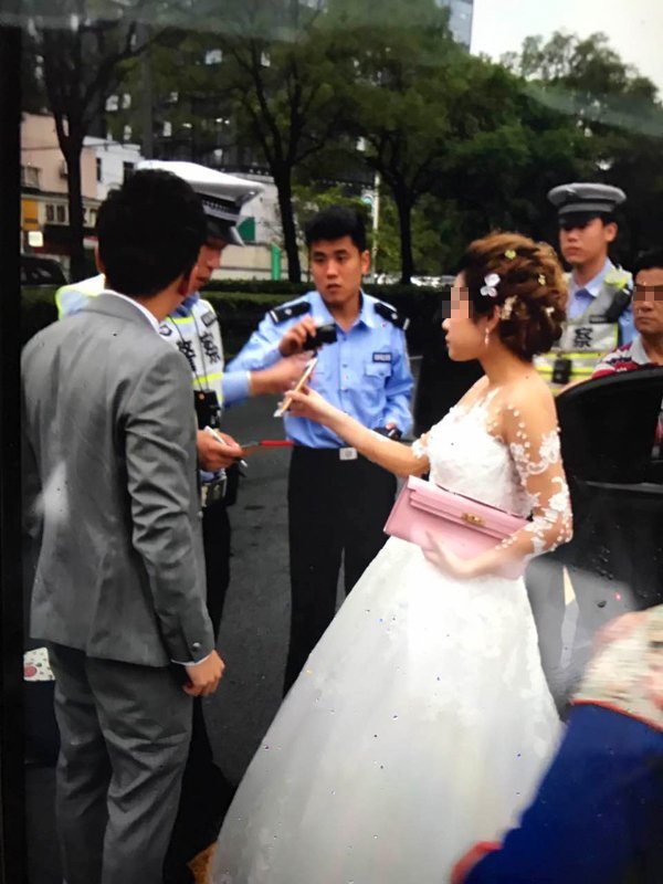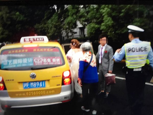當(dāng)隨車的新娘新郎得知婚車涉嫌套牌后,隨即表示支持民警工作,打車離去。