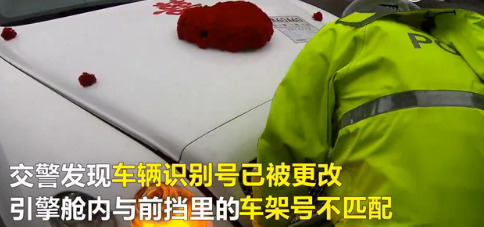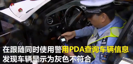 民警在跟隨過(guò)程中,使用警用PDA查詢車輛信息,發(fā)現(xiàn)登記車輛為灰色,明顯不是眼前的白色跑車,隨即將婚車車隊(duì)攔停后,詢問(wèn)駕駛員車輛來(lái)源。