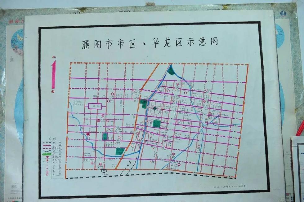 于是,76歲的他開始白天騎車走街串巷,沿途掏出紙和筆進(jìn)行勾勒、記錄,標(biāo)注街道、商鋪、路線,畫出簡易地圖;晚上,他就從廚房拿出面板,當(dāng)作繪圖板認(rèn)真畫圖。就這樣,他利用兩年時(shí)間,繪制完成市區(qū)主要單位商鋪示意圖、華龍區(qū)主要單位商鋪示意圖、濮陽市道路交通圖等4張地圖,成為當(dāng)前濮陽市最新地圖。