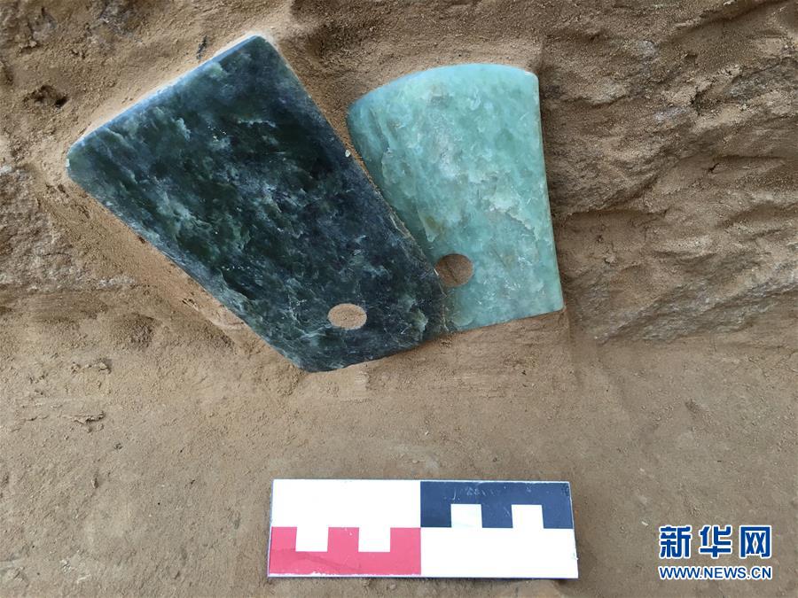 這是陜西神木縣石峁遺址皇城臺(tái)遺跡發(fā)現(xiàn)的玉器(2016年6月7日攝)。新華社發(fā)