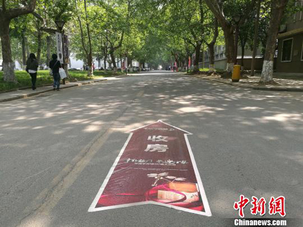 校園內(nèi)貼有收房指示路標(biāo)。記者4月27日在西安建筑科技大學(xué)華清學(xué)院看到,華清學(xué)府城與該校緊鄰,中間有一道門可以進(jìn)出。樓盤交房廣告標(biāo)語張貼于學(xué)校大門的門柱上,寫有“交房臨時(shí)停車由此進(jìn)入”、“46#樓交房現(xiàn)場(chǎng)由此前行”、“熱烈祝賀46#樓盛大交房”等標(biāo)示。
