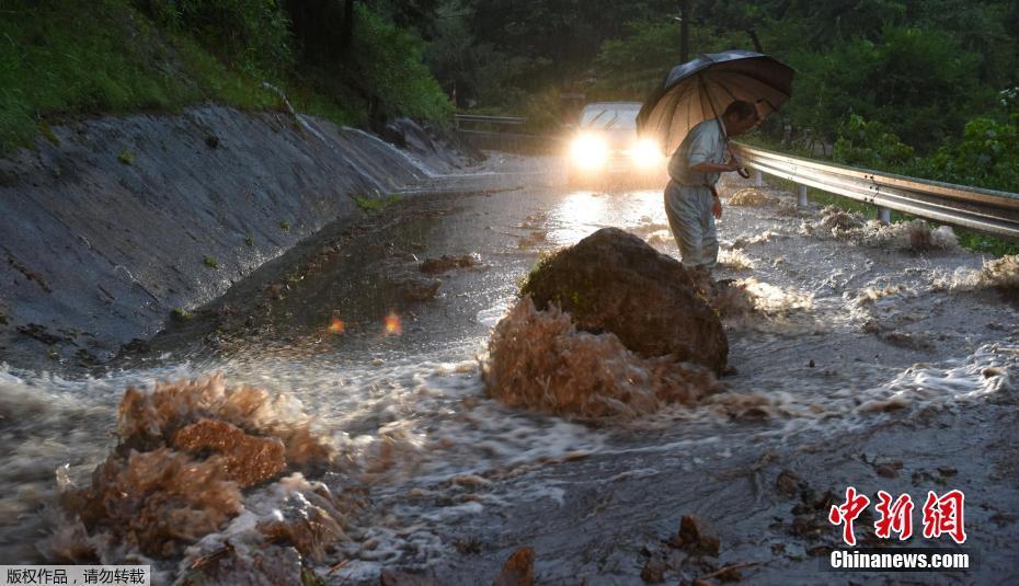 當(dāng)?shù)貢r(shí)間2017年7月5日,臺風(fēng)“南瑪都”為日本九州地區(qū)帶來強(qiáng)降雨。圖為九州島大分縣,大雨導(dǎo)致巨石滾落,交通癱瘓。
