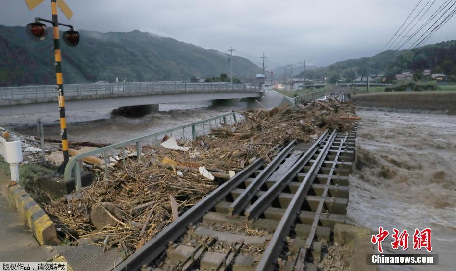 臺風(fēng)“南瑪都”4日吹襲日本,挾著時(shí)速144公里強(qiáng)風(fēng),在九州島東南部的長崎登陸,隨后九州島交通陷于癱瘓。圖為九州島福岡縣,洪水過后,鐵道上堆滿了木屑和垃圾。
