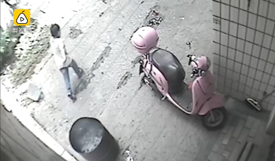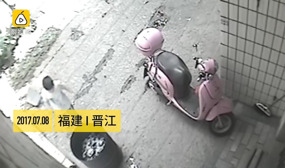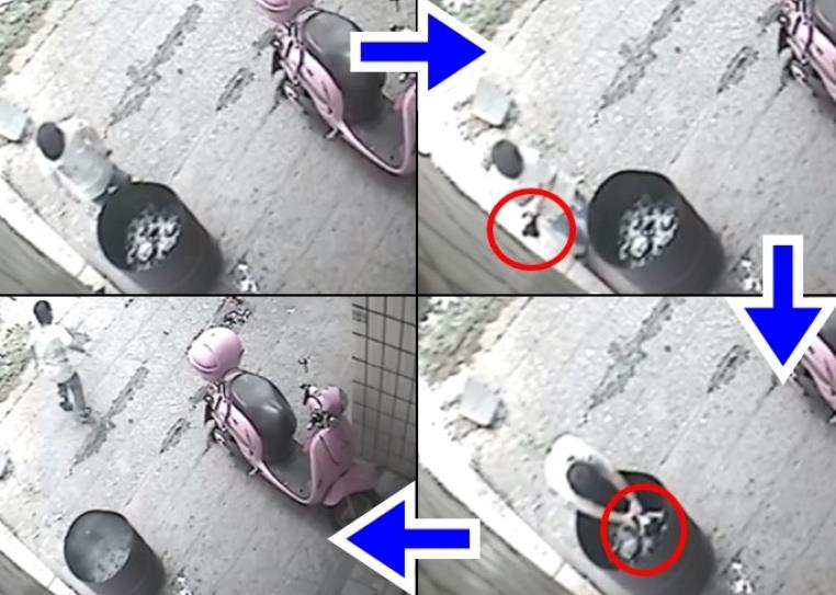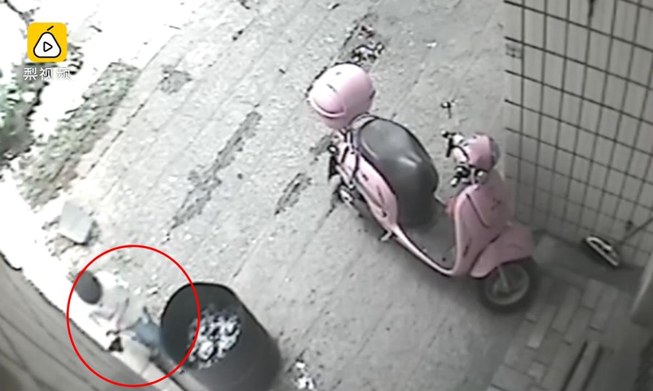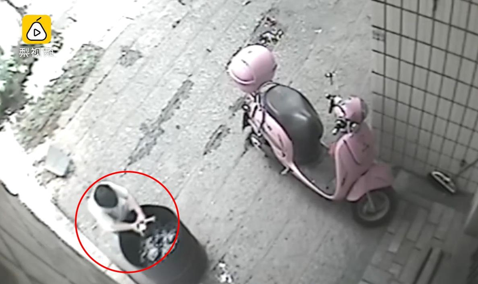 男童扔完后離開現(xiàn)場。