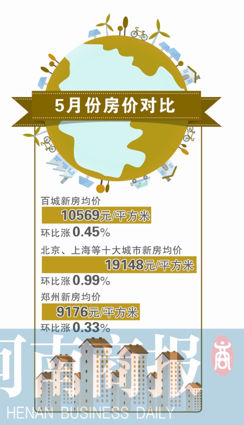 昨日,5月份全國地產(chǎn)百城價格指數(shù)報告公布,全國百城新房均價為10569元/平方米,環(huán)比由跌轉(zhuǎn)漲0.45%,有48個城市環(huán)比上漲;均價同比下跌3.73%,跌幅較上月收窄0.73個百分點。鄭州方面,5月份新房均價9176元/平方米,環(huán)比、同比均出現(xiàn)不同程度上漲。