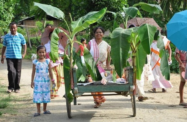 在婚禮上,主持婚禮的圣徒吟誦傳統(tǒng)的祈禱詞,婚禮結(jié)束后,青蛙會被帶到附近的小池塘放生。村民則繼續(xù)用餐,有超過900盤食物被供應。參加儀式的村民Gogoi說:“我們放生青蛙,這樣它們可以過它們自己的生活,同時向雨神傳達我們的信息。舉行這樣的儀式是不得已的措施,我們感謝上帝能夠讓我們的愿望成真?!?/p>