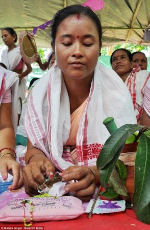 儀式由抓住來自不同村莊的一雌一雄兩只青蛙開始。達斯說:“我們必須確保青蛙來自兩個不同的村莊,只有這樣,雨神才能接受我們的呼吁。等到青蛙準備就緒了,整個婚禮的儀式就像我們?nèi)祟愖约旱幕槎Y儀式一樣?!?/font>