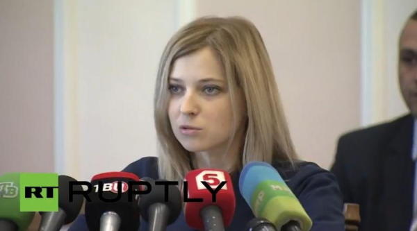 克里米亞議會(huì)3月11日表決任命納塔利婭·波科隆斯卡婭為檢察長。此前她是辛菲羅波爾市總檢察院檢察員,支持克里米亞獨(dú)立,加入俄羅斯,稱基輔新政權(quán)是魔鬼。這些都無關(guān)緊要,重要的是在波科隆斯卡婭接受任命后首次亮相的記者會(huì)上,世界許多國家的觀眾都被她的容貌所吸引。而且隨即引起了網(wǎng)民們對(duì)于她的各種惡搞。