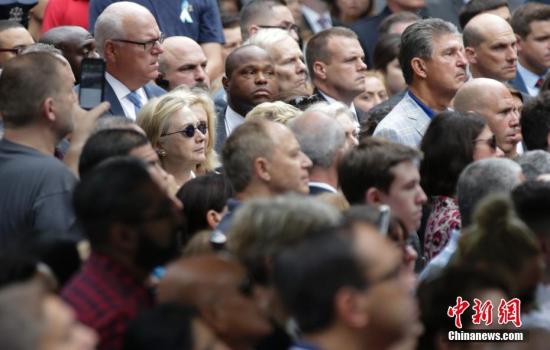 資料圖:當(dāng)?shù)貢r(shí)間9月11日,“911”15周年紀(jì)念活動(dòng)在美國紐約911紀(jì)念公園舉行,圖為美國民主黨總統(tǒng)候選人希拉里出席當(dāng)天的紀(jì)念活動(dòng)。 中新社記者 廖攀 攝
