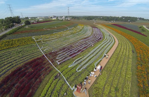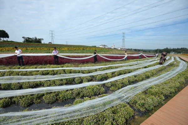 9月24日,為了迎接國慶大假,工作人員在成都一景點內(nèi)擺放一款4100米長的婚紗,該婚紗的拖尾用單層網(wǎng)紗制作而成,寬度1.5米,耗時一個月,大約花費4萬元。成都商報/東方IC